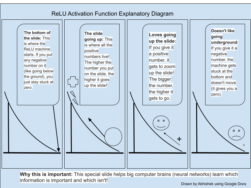 The ReLU machine is kind of like a special helper inside a big brain made of computer code (that's what a neural network is!). This special helper makes the brain learn better and faster. It's like the machine helps the brain decide which information is important and which isn't!